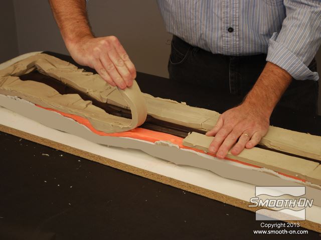 לחיצה להגדלת תמונה משתמשים בחימר על בסיס שמן כדי להכין מחיצת הפרדה מסביב לרובה. משתמשים בחימר על בסיס שמן כדי להכין מחיצת הפרדה מסביב לרובה.