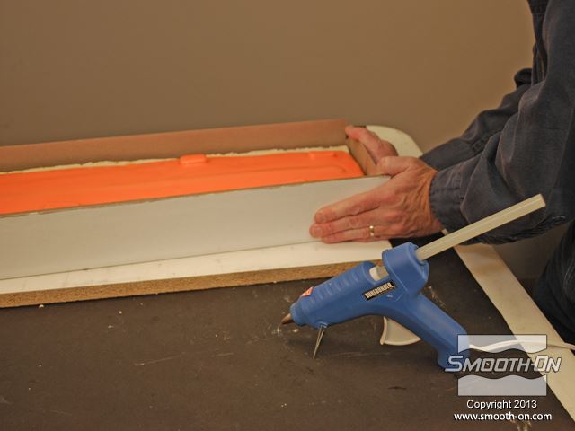 לחיצה להגדלת תמונה מדביקים את הקרטון עם דבק חם מסביב לחצי התבנית. מדביקים את הקרטון עם דבק חם מסביב לחצי התבנית.