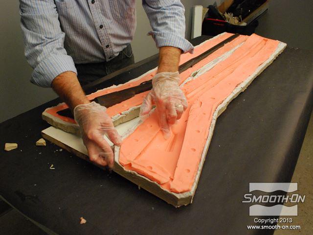 לחיצה להגדלת תמונה משתמשים בסיליקון RTV להברשה Rebound® 25 כדי להכין את תבנית הגומי. משתמשים בסיליקון RTV להברשה Rebound® 25 כדי להכין את תבנית הגומי.