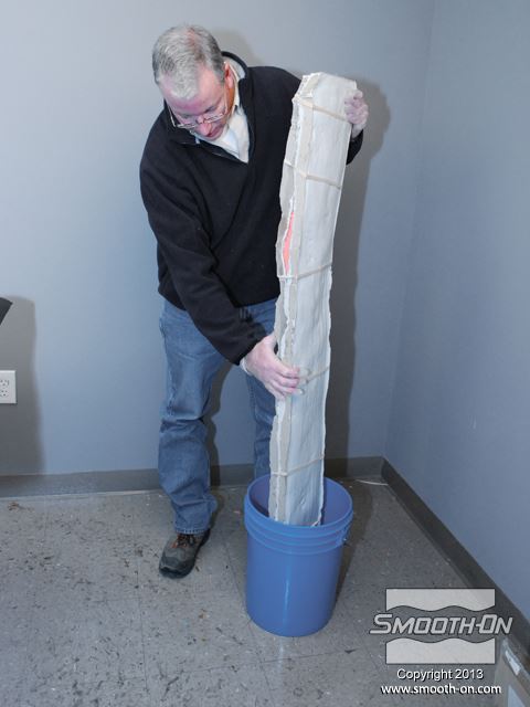 לחיצה להגדלת תמונה ממקמים את התבנית בתוך דלי ומניחים חפצים מסביבה כך שתשאר זקופה בזמן היציקה. ממקמים את התבנית בתוך דלי ומניחים חפצים מסביבה כך שתשאר זקופה בזמן היציקה.