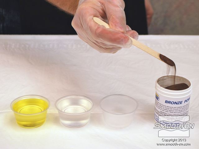 לחיצה להגדלת תמונה מערבבים את הפוליאוריטן קשיח ליציקה הSmooth-Cast® 325, פיגמנט שחור SO-Strong ואבקת ברונזה כדי להכין מערבבים את הפוליאוריטן קשיח ליציקה הSmooth-Cast® 325, פיגמנט שחור SO-Strong ואבקת ברונזה כדי להכין "יציקה קרה" של ברונזה. ניתן להשתמש גם בכל אבקת מתכת אחרת (המותאמת עבור 325) עבור תהליך זה.