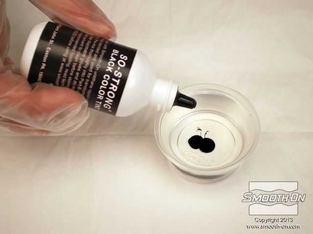 לחיצה להגדלת תמונה מוסיפים שתי טיפות של פיגמנט שחור למקשה B של הפוליאוריתן. מוסיפים שתי טיפות של פיגמנט שחור למקשה B של הפוליאוריתן.