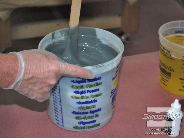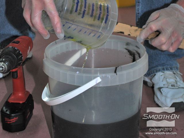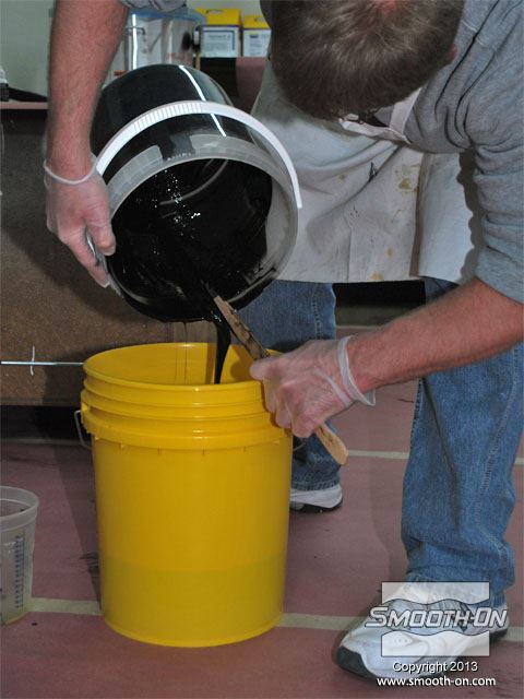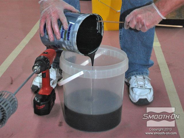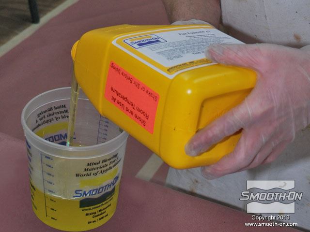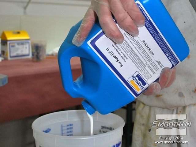 לחיצה להגדלת תמונה שופכים את הפוליאוריתן המוקצף Flex Foam-iT!® 17 אל תבנית הסיליקון. שופכים את הפוליאוריתן המוקצף Flex Foam-iT!® 17 אל תבנית הסיליקון.