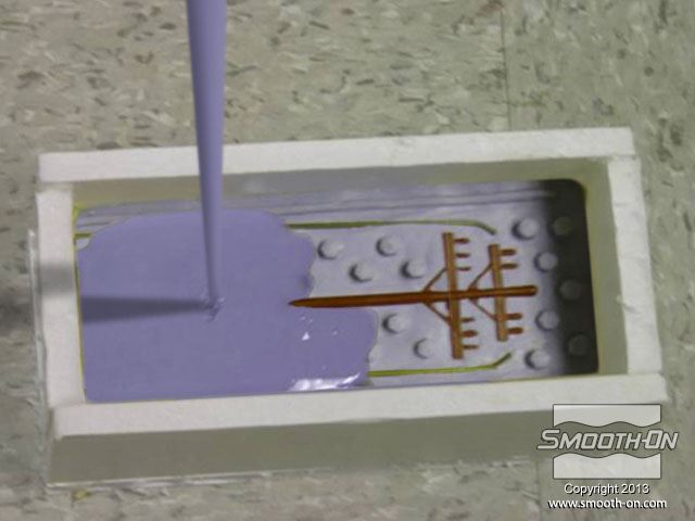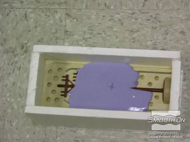 לחיצה להגדלת תמונה שופכים את חלק הבסיס עם חלק המקשה הצבוע של פוליאוריטן קשיח ליציקה Smooth-Cast® 320. שופכים את חלק הבסיס עם חלק המקשה הצבוע של פוליאוריטן קשיח ליציקה Smooth-Cast® 320.