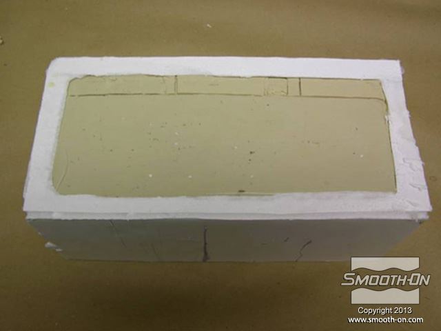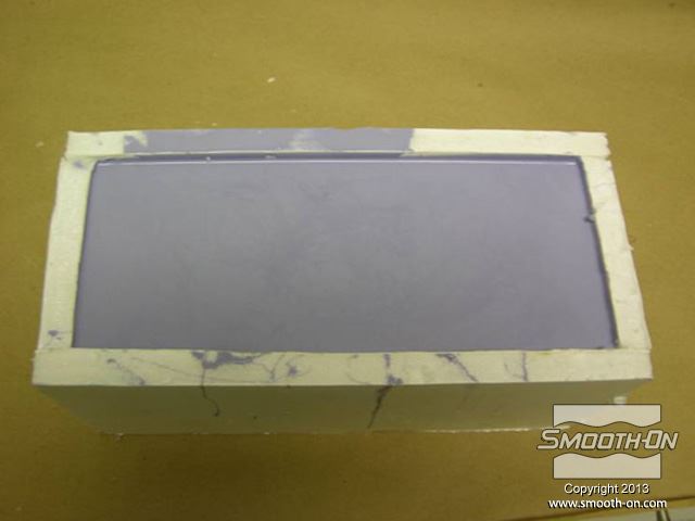 לחיצה להגדלת תמונה מערבבים סיליקון OOMOO® 30 ושופכים אל תוך הקופסה כדי ליצור את חצי התבנית השני. מערבבים סיליקון OOMOO® 30 ושופכים אל תוך הקופסה כדי ליצור את חצי התבנית השני.