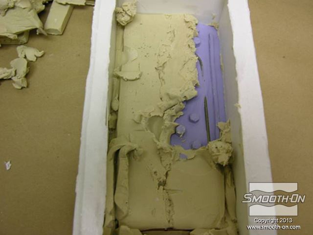 לחיצה להגדלת תמונה מנקים את כל החימר מהמודל וחצי תבנית הסיליקון. מנקים את כל החימר מהמודל וחצי תבנית הסיליקון.