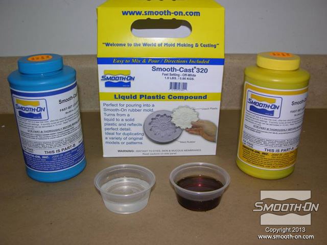 לחיצה להגדלת תמונה עבור היציקה, משתמשים בשרף פוליאורטן Smooth-Cast® 320. מודדים את החלקים בכמויות שוות. עבור היציקה, משתמשים בשרף פוליאורטן Smooth-Cast® 320. מודדים את החלקים בכמויות שוות.