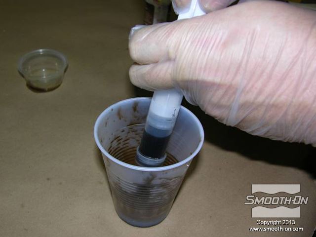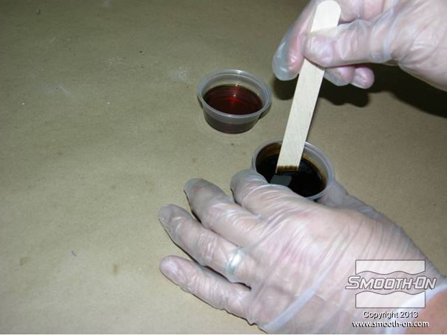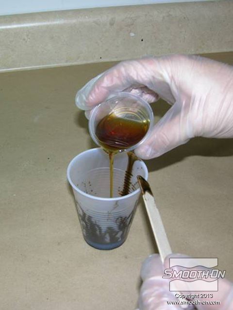 לחיצה להגדלת תמונה מערבבים את הפיגמנט ביסודיות בחלק המקשה של שרף הSmooth-Cast® 320. מערבבים את הפיגמנט ביסודיות בחלק המקשה של שרף הSmooth-Cast® 320.