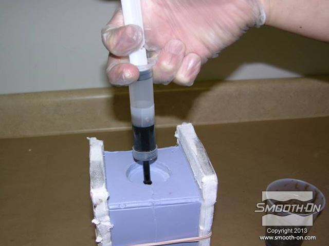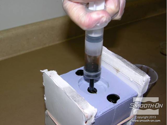 לחיצה להגדלת תמונה מזריקים את שרף הSmooth-Cast® 320, בעל הצמיגות הנמוכה, אל התבנית. מזריקים את שרף הSmooth-Cast® 320, בעל הצמיגות הנמוכה, אל התבנית.
