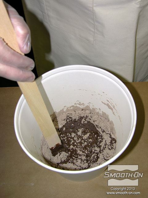 לחיצה להגדלת תמונה לאחר שהמקשה והפילר מעורבבים היטב והינם במרקם חלק, מוסיפים מספר טיפות של צבע לפוליאוריטן So-Strong חום. לאחר שהמקשה והפילר מעורבבים היטב והינם במרקם חלק, מוסיפים מספר טיפות של צבע לפוליאוריטן So-Strong חום.