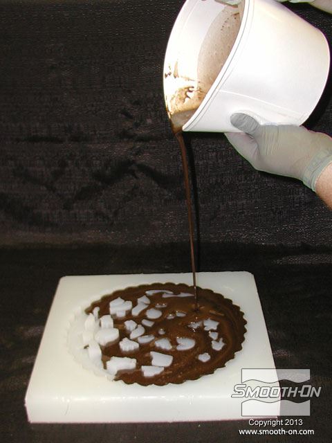 לחיצה להגדלת תמונה לאחר שהתערובת בצבע אחיד ומעורבבת כראוי, שופכים אותה בעדינות לנקודה אחת בתבנית הסיליקון. מניחים לנוזל למלא את כל אזורי התבנית עד שחלל התבנית מלא לגמרי בשרף הפוליאוריתן. לאחר שהתערובת בצבע אחיד ומעורבבת כראוי, שופכים אותה בעדינות לנקודה אחת בתבנית הסיליקון. מניחים לנוזל למלא את כל אזורי התבנית עד שחלל התבנית מלא לגמרי בשרף הפוליאוריתן.