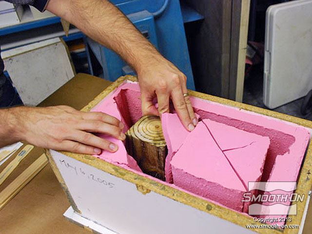 לחיצה להגדלת תמונה בתוך תבנית הסיליקון קיימים מוטות תמיכה מעץ כך שהתבנית תשמור על צורתה בזמן היציקה. בתוך תבנית הסיליקון קיימים מוטות תמיכה מעץ כך שהתבנית תשמור על צורתה בזמן היציקה.