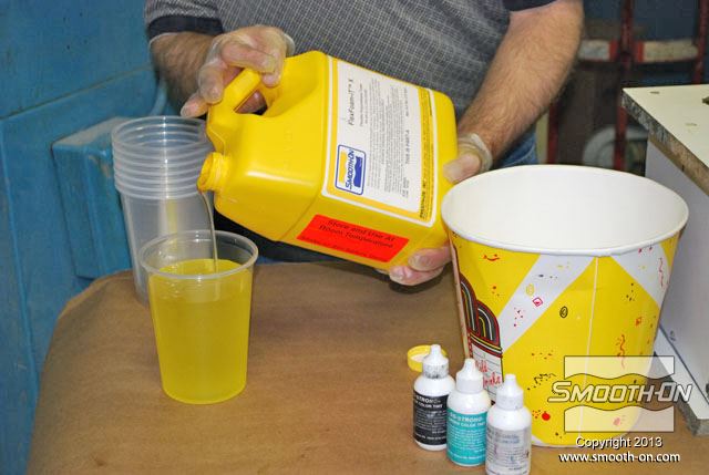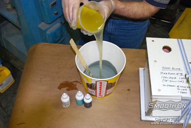 לחיצה להגדלת תמונה שופכים גם את הבסיס של קצף הFlex Foam-iT! X אל מיכל הערבוב. שופכים גם את הבסיס של קצף הFlex Foam-iT! X אל מיכל הערבוב.