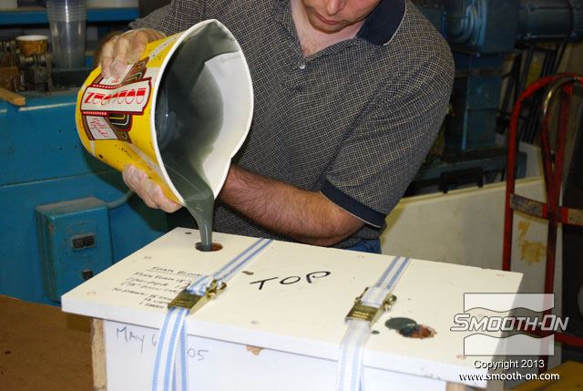 לחיצה להגדלת תמונה שופכים את תערובת ה פוליאוריטן מוקצף גמיש אל התבנית דרך החור במכסה. שופכים את תערובת ה פוליאוריטן מוקצף גמיש אל התבנית דרך החור במכסה.