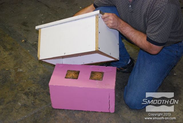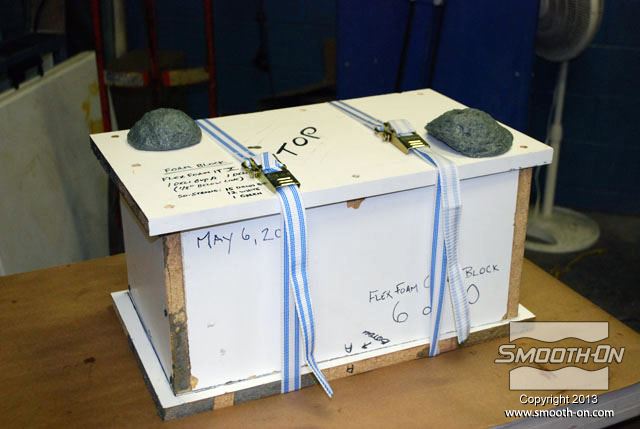 לחיצה להגדלת תמונה מכניסים את תבנית ה סיליקון ליציקה Mold Max 30 לתוך קופסת תבנית מעץ. מכניסים את תבנית ה סיליקון ליציקה Mold Max 30 לתוך קופסת תבנית מעץ.