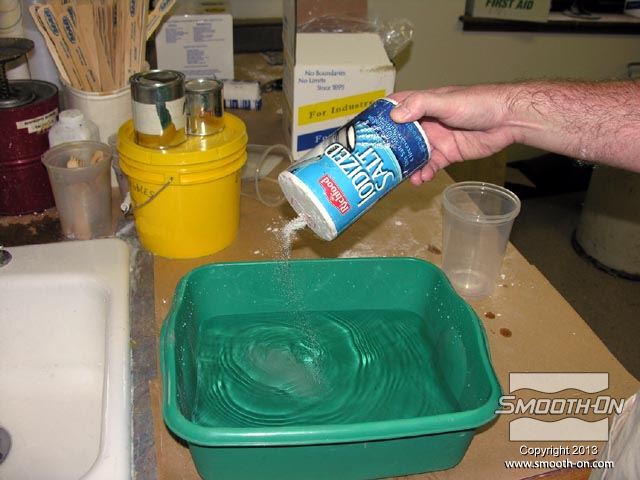 לחיצה להגדלת תמונה מוסיפים מלח למים פושרים( 27°C) כדי לקצר את זמן ההתקשות של תחבושות הגבס. מוסיפים מלח למים פושרים( 27°C) כדי לקצר את זמן ההתקשות של תחבושות הגבס.