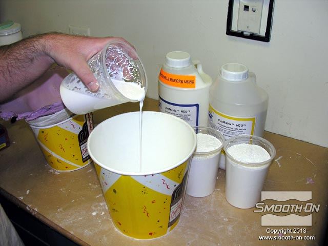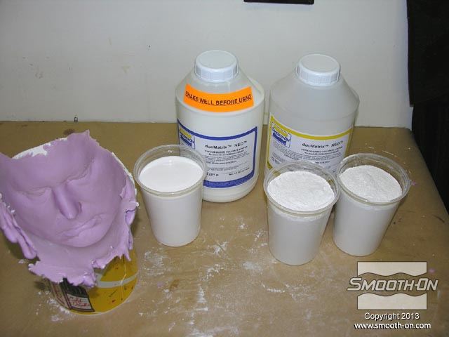 לחיצה להגדלת תמונה משתמשים בגבס מחוזק פולימר duoMatrix® NEO ביחס של 2 בסיס (Part A) : על 1 מקשה (Part B) עבור היציקה. משתמשים בגבס מחוזק פולימר duoMatrix® NEO ביחס של 2 בסיס (Part A) : על 1 מקשה (Part B) עבור היציקה.