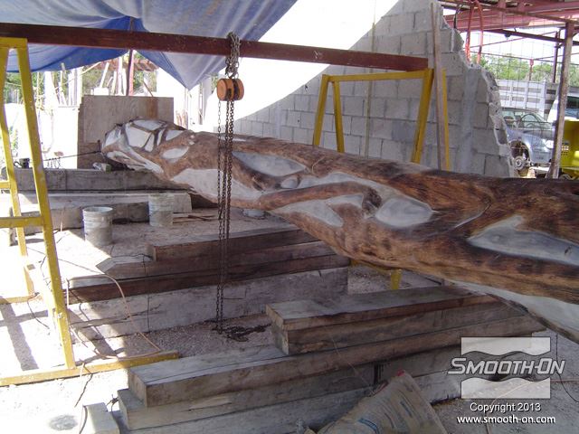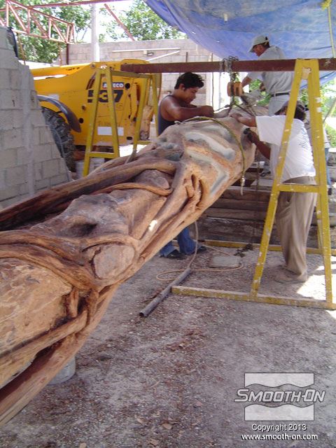 גזע הפיקוס שנחתך לפני הכנת התבנית. יש להכין את העץ היטב לפני שמתחילים ליצור את התבנית. ההכנה כוללת גילוף עודפי עץ מיותרים, ליטוש וניקוי הגזע סותמים זויות שליליות של המודל (Undercuts), תוך כדי תשומת לב לא לפגוע בצורה המקורית של הגזע. סתימת הזויות השליליות מונעת נעילה מכאנית של גיבוי התבנית. לאחר הניקוי וסצימת הזויות השליליות של המודל, מורחים חומר אטימה Super Seal  על הגזע בכך סותמים נקבוביות במודל ומונעים ריאקציה כימית של הסיליקון Rebound 25. מורחים 4 שכבות של סיליקון Rebound 25 עד להגעה לעובי של 1 ס מניחים לתבנית להתקשות, ואח לאחר התקשות שכבת הגיבוי חולצים אותה ואחריה את הסיליקון מהמודל. מניחים את הסיליקון בתוך הגיבוי. תבנית הסיליקון מוכנה ליציקה. Rebound 25  הינו סיליקון חזק מאוד והוא יכול להיחלץ בקלות ללא חשש שיקרע. Rebound 25 מעתיק בצורה מושלמת כל פרט ופרט במודל עץ הפיקוס. יציקת GFRC נעשית בשכבות, ראשית מתיזים שכבה בטון על התבנית. סיבי זכוכית קצוצים מותזים על שיכבת הבטון הראשונית. סיבי הזכוכית יתנו למוצר הסופי תכונות חוזק יוצאות מן הכלל. שכבות נוספות של בטון וסיבי זכוכית מותזות על התבנית עד לקבלת העובי הרצוי. לאחר ההתקשות ניתן לחלץ את הבטון מתבנית הסיליקון Rebound 25 והמוצר מוכן להתקנה. החלקים הגמורים שיוצרו נראים בדיוק כמו עץ פיקוס מקורי . סיליקון Rebound 25 ניתן לשימוש חוזר רב-פעמי ליצירת אלמנטים ארכיטקטונים שונים כלל חלקי התבנית מוצבים סביב העמוד המיועד לציפוי, המרווחים נאטמים בעזרת GFRC נוסף ושיוף. העמוד נצבע בצבעים זהים למקור. על מנת ליצור חלקים מדוייקים למקור כמו עץ פיקוס, חובה להשתמש בחומרים היודעים להעתיק את הפרטים בצורה מושלמת. סיליקון Rebound 25  יעתיק אפילו את הפרטים הקטנים ביותר סיליקון Rebound 25 ניתן לשימוש חוזר רב-פעמי ליצירת אלמנטים ארכיטקטונים שונים