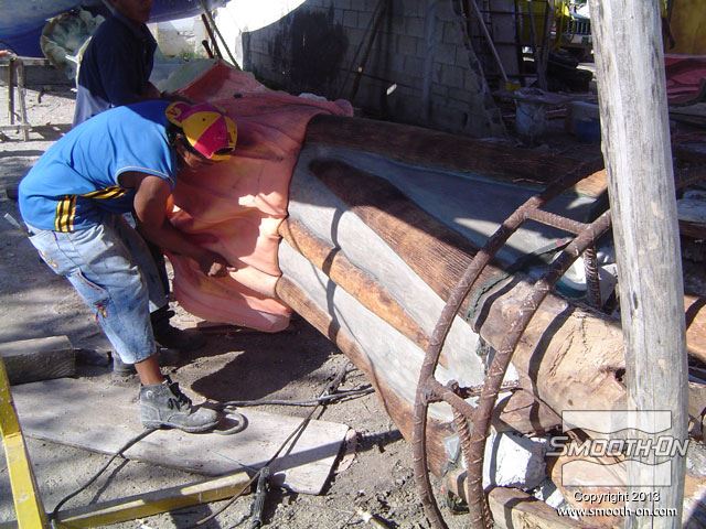 לחיצה להגדלת תמונה מניחים לתבנית להתקשות, ואח מניחים לתבנית להתקשות, ואח"כ מכינים את הגיבוי בשיכוב של אפוקסי ובדי זכוכית.