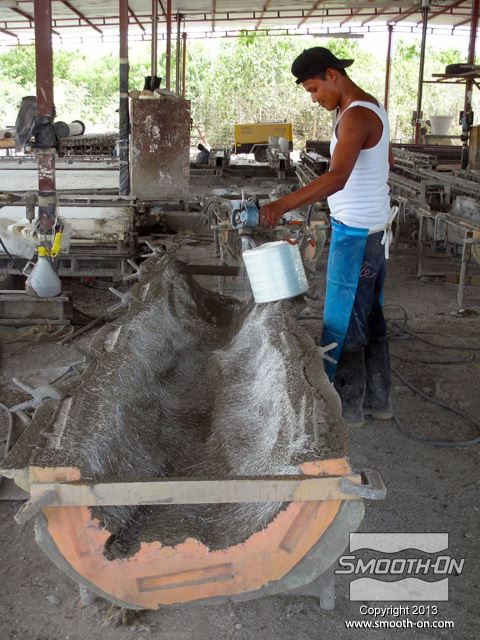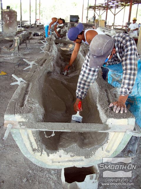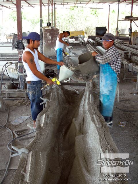 לחיצה להגדלת תמונה שכבות נוספות של בטון וסיבי זכוכית מותזות על התבנית עד לקבלת העובי הרצוי. שכבות נוספות של בטון וסיבי זכוכית מותזות על התבנית עד לקבלת העובי הרצוי.
