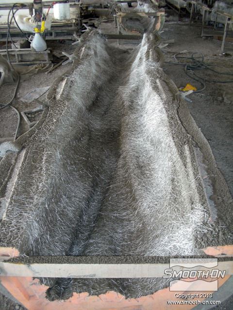 לחיצה להגדלת תמונה סיבי זכוכית קצוצים מותזים על שיכבת הבטון הראשונית. סיבי זכוכית קצוצים מותזים על שיכבת הבטון הראשונית.
