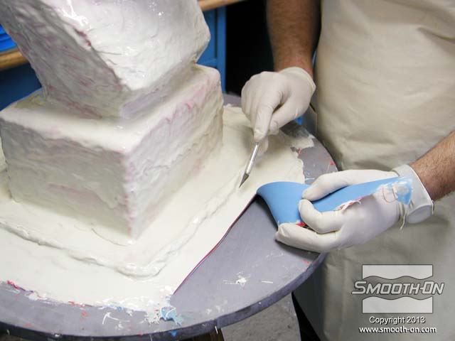 לחיצה להגדלת תמונה מתחילים לבנות את שביל החיתוך; לאחר סיום הכנת תבנית הפוליאוריטן התבנית תחתך לאורך השביל שמיוצר בשלב זה. יישום המריחה הוא מלמעלה למטה.  מתחילים לבנות את שביל החיתוך; לאחר סיום הכנת תבנית הפוליאוריטן התבנית תחתך לאורך השביל שמיוצר בשלב זה. יישום המריחה הוא מלמעלה למטה.