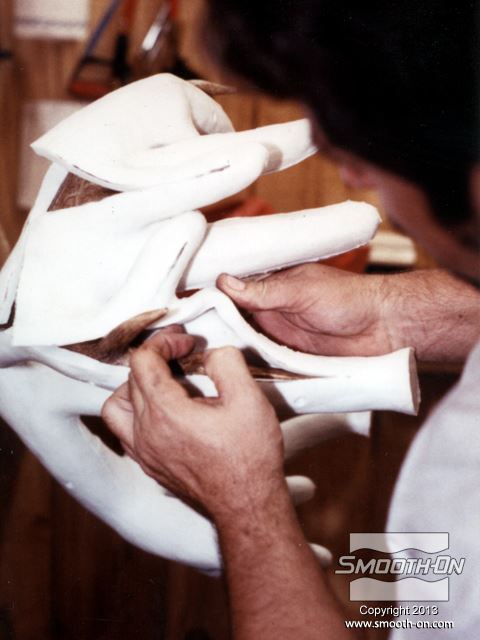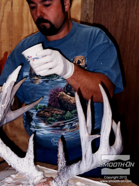 לחיצה להגדלת תמונה מורחים שכבה דקה של סיליקון להכנת תבנית Mold Max® 30 על הקרניים כדי לצמצם לכידה של בועות אוויר. מורחים שכבה דקה של סיליקון להכנת תבנית Mold Max® 30 על הקרניים כדי לצמצם לכידה של בועות אוויר.