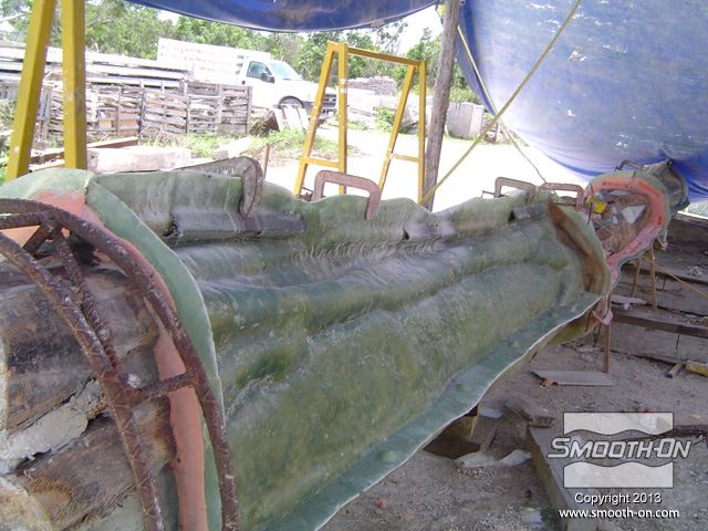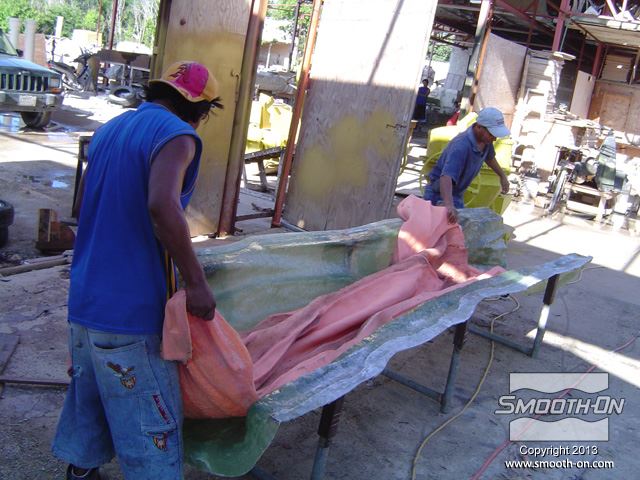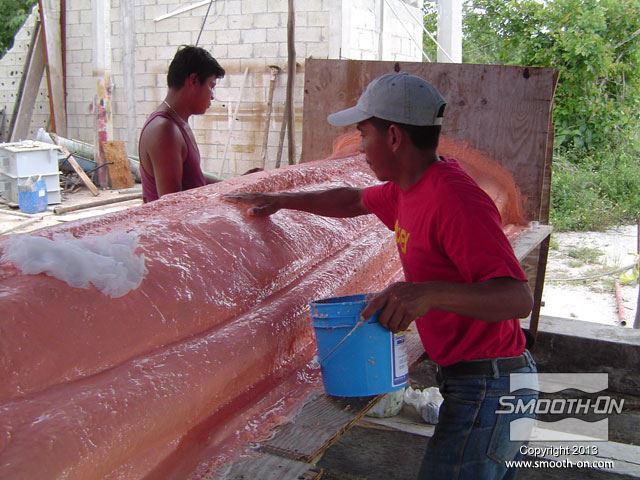לחיצה להגדלת תמונה מניחים לתבנית להתקשות, ואח מניחים לתבנית להתקשות, ואח"כ מכינים את הגיבוי בשיכוב של אפוקסי ובדי זכוכית.