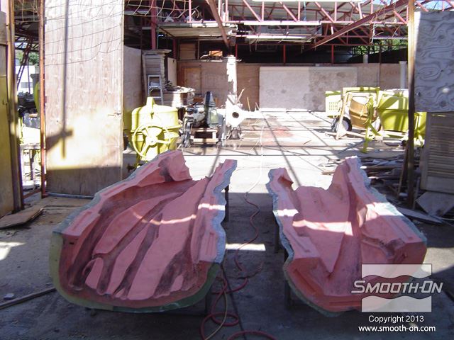 לחיצה להגדלת תמונה שכבות נוספות של בטון וסיבי זכוכית מותזות על התבנית עד לקבלת העובי הרצוי. שכבות נוספות של בטון וסיבי זכוכית מותזות על התבנית עד לקבלת העובי הרצוי.