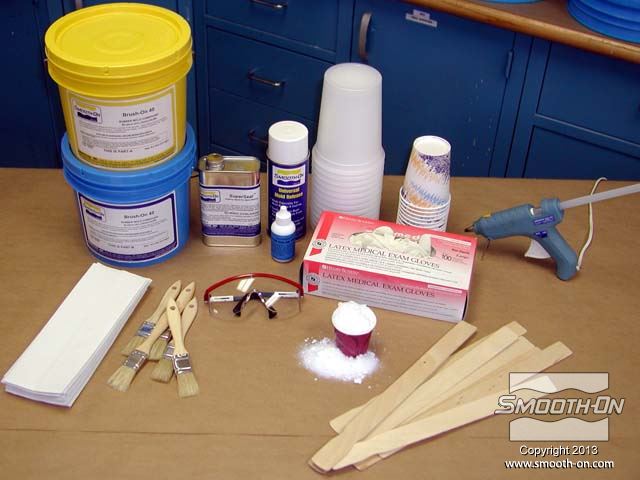 לחיצה להגדלת תמונה חומרי העבודה בשימוש: פולאוריטן למריחה Brush-On 40, חומר אטימה Super Seal, חומר הפרדה Universal mold release, פיגמנט לפוליאוריטן בצבע כחול SO-Strong Blue, מסמיך Cab-O-Sil , כוסות ערבוב, כפפות, אקדח דבק חם, נייר ניגוב, מברשות, משקפי מגן, מקלות ערבוב. חומרי העבודה בשימוש: פולאוריטן למריחה Brush-On 40, חומר אטימה Super Seal, חומר הפרדה Universal mold release, פיגמנט לפוליאוריטן בצבע כחול SO-Strong Blue, מסמיך Cab-O-Sil , כוסות ערבוב, כפפות, אקדח דבק חם, נייר ניגוב, מברשות, משקפי מגן, מקלות ערבוב.