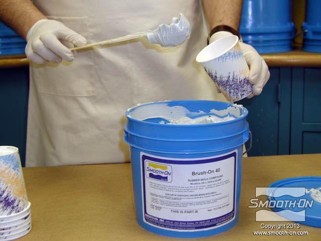 לחיצה להגדלת תמונה בגלל שהמודל עשוי גבס לבן ופוליאוריטן למריחה Brush-On 40 גם הוא לבן , מוסיפים פיגמנט כחול מסדרת So-Strong על מנת שיהיה ניתן יהיה לראות אם יש כיסוי מלא של שכבת הפוליאוריטן על המודל. בגלל שהמודל עשוי גבס לבן ופוליאוריטן למריחה Brush-On 40 גם הוא לבן , מוסיפים פיגמנט כחול מסדרת So-Strong על מנת שיהיה ניתן יהיה לראות אם יש כיסוי מלא של שכבת הפוליאוריטן על המודל.