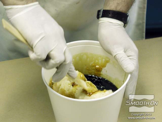 לחיצה להגדלת תמונה מערבבים היטב את חלק A וחלק B יחד עם הפיגמנט. במקרה זה הפיגמנט מאפשר לראות אם הערבוב נעשה היטב, ברגע שנעלמים הפסים הלבנים והצבע הומוגני ואחיד החומר מוכן למריחה. מערבבים היטב את חלק A וחלק B יחד עם הפיגמנט. במקרה זה הפיגמנט מאפשר לראות אם הערבוב נעשה היטב, ברגע שנעלמים הפסים הלבנים והצבע הומוגני ואחיד החומר מוכן למריחה.