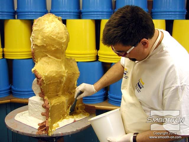 לחיצה להגדלת תמונה החלק האחורי של הפסל יהיה הראשון לקבל את הפוליאוריטן לגיבוי תבניות ה Plasti Paste.  החלק האחורי של הפסל יהיה הראשון לקבל את הפוליאוריטן לגיבוי תבניות ה Plasti Paste.