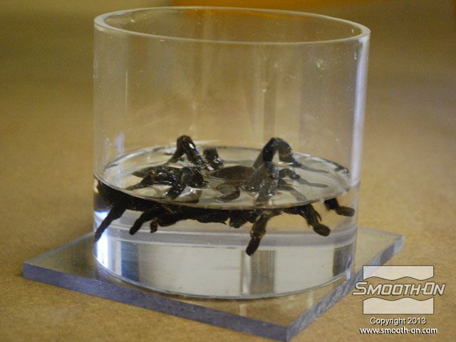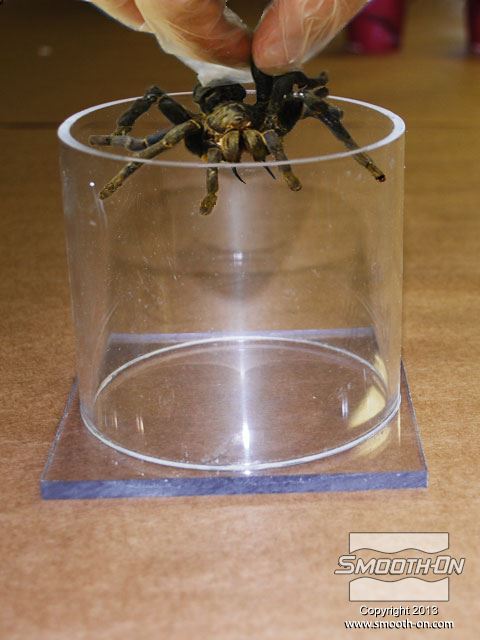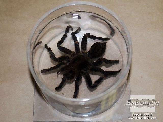 לחיצה להגדלת תמונה כדי למנוע מהטרנטולה לצוף בסיליקון, ראשית שופכים כמות קטנה של חומר כך שמכסים את העכביש בערך עד אמצע הרגלים ותחתית הגוף. כדי למנוע מהטרנטולה לצוף בסיליקון, ראשית שופכים כמות קטנה של חומר כך שמכסים את העכביש בערך עד אמצע הרגלים ותחתית הגוף.