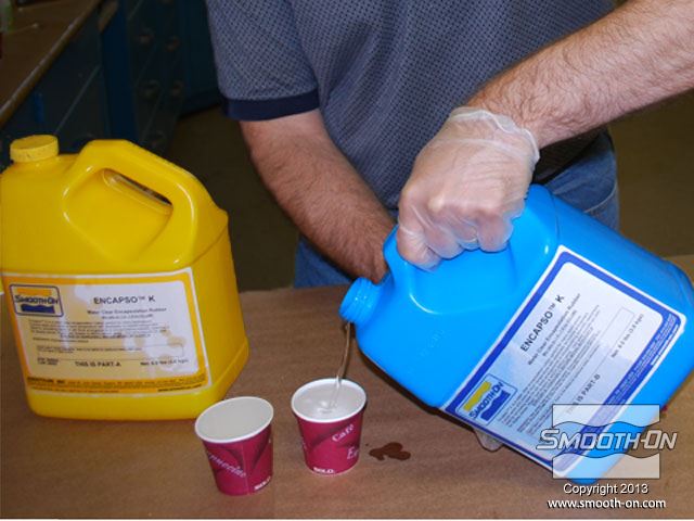 לחיצה להגדלת תמונה מודדים כמויות שוות של בסיס ומקשה  (לפי נפח) של סיליקון שקוף ללכידת חפצים Encapso® K. מודדים כמויות שוות של בסיס ומקשה (לפי נפח) של סיליקון שקוף ללכידת חפצים Encapso® K.