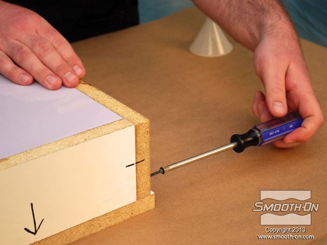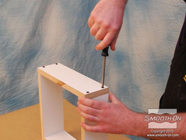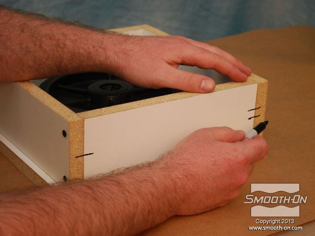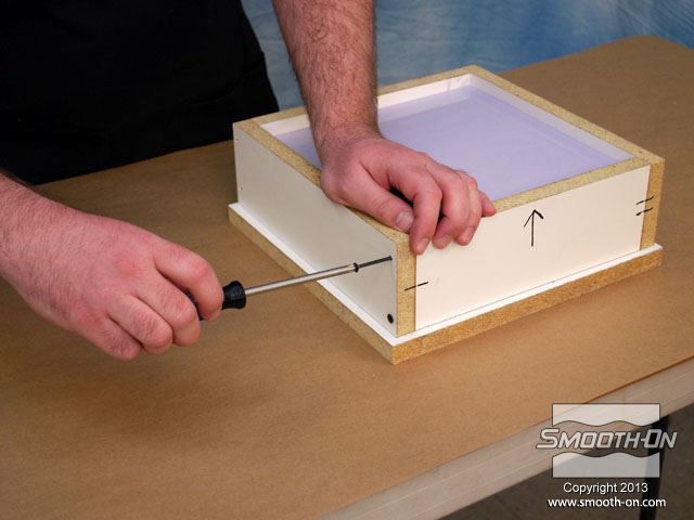 לחיצה להגדלת תמונה מכינים מסגרת לקופסה ממלאמין כך שישאר מרווח של 2.54cm מסביב למודל. מכינים מסגרת לקופסה ממלאמין כך שישאר מרווח של 2.54cm מסביב למודל.