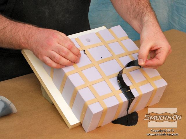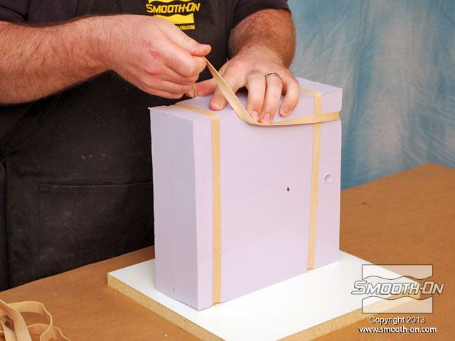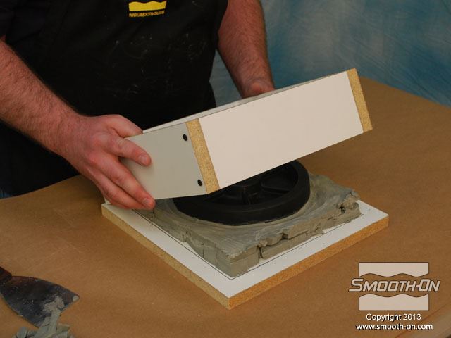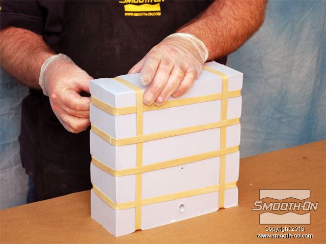 לחיצה להגדלת תמונה מכינים את החצי השני של תבנית הסיליקון על גבי הצד ההפוך של המודל העטוף בסיליקון. מכינים את החצי השני של תבנית הסיליקון על גבי הצד ההפוך של המודל העטוף בסיליקון.