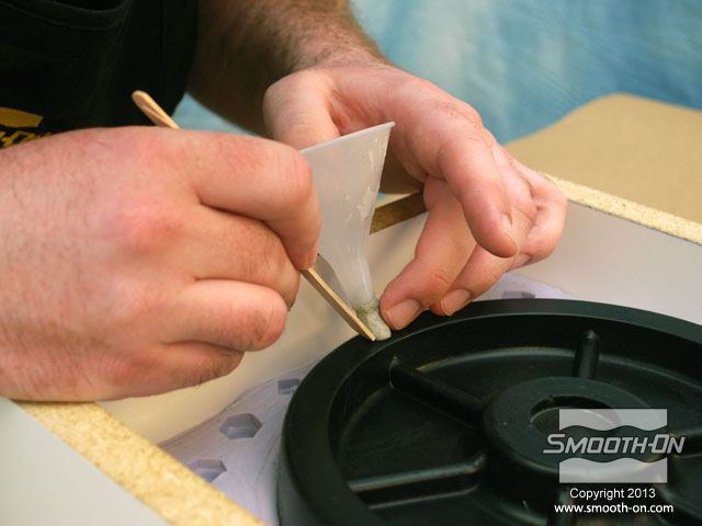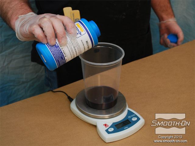 לחיצה להגדלת תמונה מודדים בעזרת משקל גרמים את חלק הבסיס של הסיליקון Mold Max® 25. מודדים בעזרת משקל גרמים את חלק הבסיס של הסיליקון Mold Max® 25.