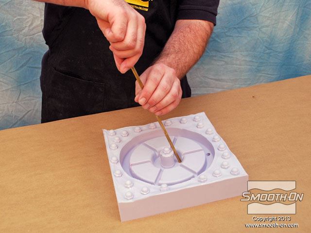 לחיצה להגדלת תמונה צינור הפליז יצור חור בתבנית הסיליקון שיהווה פתח אוורור. צינור הפליז יצור חור בתבנית הסיליקון שיהווה פתח אוורור.