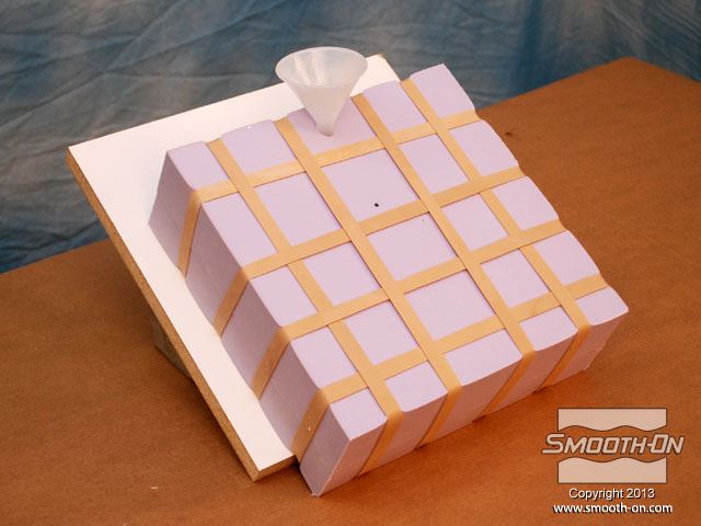 לחיצה להגדלת תמונה מחברים משפך לדגם בעזרת חתיכת חימר קטנה, כדי לאפשר יציקה קלה של חומר אל התבנית הגמורה, מאוחר יותר. מחברים משפך לדגם בעזרת חתיכת חימר קטנה, כדי לאפשר יציקה קלה של חומר אל התבנית הגמורה, מאוחר יותר.