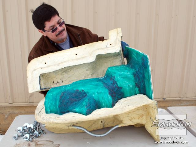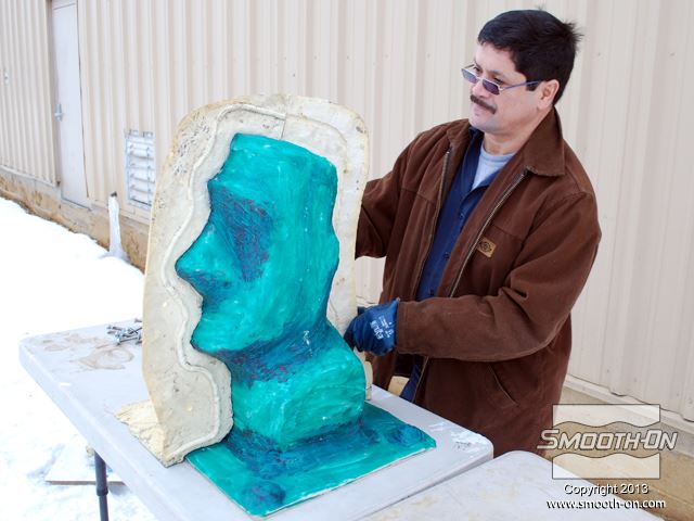 לחיצה להגדלת תמונה כשהפסל מוכן, ארנסטו מתחיל להכין את התבנית בעזרת סיליקון למריחה Rebound 25. ארנסטו מכין תבניות כבר 25 שנה והוא אומר ש כשהפסל מוכן, ארנסטו מתחיל להכין את התבנית בעזרת סיליקון למריחה Rebound 25. ארנסטו מכין תבניות כבר 25 שנה והוא אומר ש"Rebound® 25 הוא הסיליקון למריחה הפשוט ביותר לשימוש והתבניות שהכנתי מחזיקות לנצח".