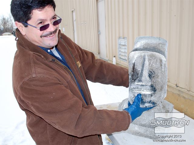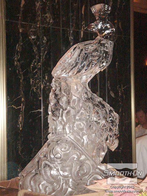 תהליך יצירת פסל הקרח של ארנסטו מתחיל בפיסול המודל המקורי מחימר. ארנסטו משתמש בחימר Chavant NSP, נטול גופרית, שלא יפריע לסיליקון למריחה Rebound 25. כשהפסל מוכן, ארנסטו מתחיל להכין את התבנית בעזרת סיליקון למריחה Rebound 25. ארנסטו מכין תבניות כבר 25 שנה והוא אומר ש לאחר שהסיליקון Rebound® 25 התמצק לגמרי, מכינים מעיל תמיכה מפוליאוריתן למריחה Plasti-Patse. לאחר שמעיל התמיכה מתמצק, מוציאים את מודל החימר המקורי. לאחר מכן, מחזירים את תבנית הסיליקון אל מעיל התמיכה ונועלים את החצאים. תבנית הגומי סיליקון Rebound® 25 מוכנה ליציקת המים. כדי לחסוך באנרגיה וכסף, ארנסטו מעביר הרבה מהייצור שלו החוצה בחודשי החורף הקרים ונותר לטבע לעשות את שלו ולהכין את פסלי הקרח היפים. מילוי תבנית הסיליקון אורך פחות מדקה. מניחים למים לקפוא בתבנית. לאחר מספר ימים, פסל הקרח מוכן לחליצה. דרושים לפחות שני אנשים כדי להרים את התבנית והיציקה הכבדות. פותחים את הנעילה במעיל התמיכה. מסירים את שני חצאי מעיל התמיכה, אחד אחרי השני. מסירים את שני חצאי מעיל התמיכה, אחד אחרי השני. מסירים את תבנית הסיליקון Rebound® 25 מהפסל, כמו כפפה. סיליקון למריחה Rebound® 25 הוא חומר חזק מאוד וניתן לבצע בו מאות יציקות. פסל הקרח מוכן. הוא מוסיף עניין ואווירה אלגנטית לכל סביבה. ארנסטו הכין פסלים שהוצגו במסיבות פרטיות, אירועים של הממשלה ושל קבוצות ספורט, קאנטרי קלאבים ועוד. הטווס המפורט במיוחד בתמונה הוא עדיין פסל נמכר ביותר עבור החברה של ארנסטו How Nice Ice. פסל זה של קרן השפע (קורנוקופיה) הוא בגובה 1.22 מטר. ארנסטו אומר ש פסלי הקרח של ארנסטו על סיפון הQE II. הפסלים מוסיפים מגע אלגנטי למסעדה. פסלי הקרח של ארנסטו על סיפון הQE II. הפסלים מוסיפים מגע אלגנטי למסעדה. ארנסטו אומר ש עיצוב פסל מיוחד שארנסטו הכין בשביל לשמור בקבוקים בקירור על סיפון הQE II.