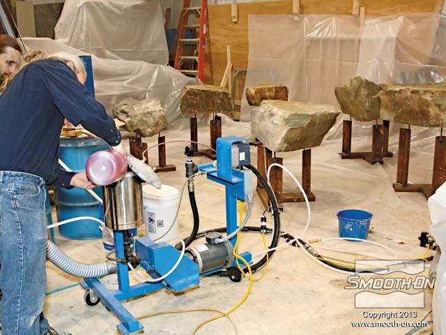 לחיצה להגדלת תמונה הסלעים הוגבהו והוכנו לתהליך הכנת תבנית עם סיליקון להתזה Mold Max® 30. הסלעים הוגבהו והוכנו לתהליך הכנת תבנית עם סיליקון להתזה Mold Max® 30.