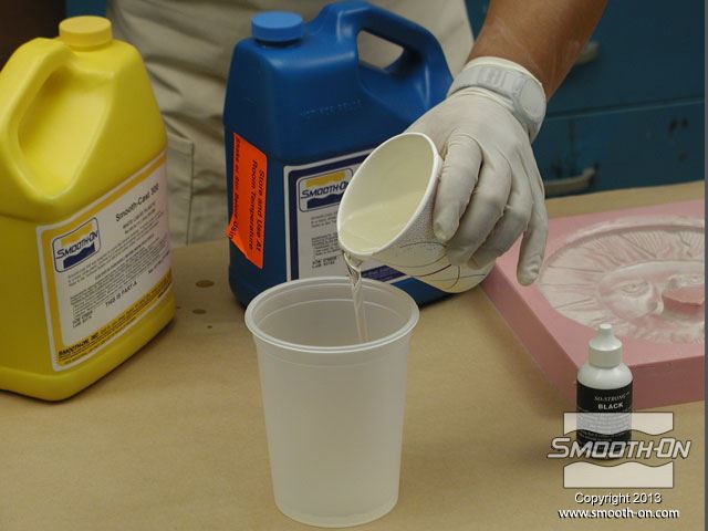 לחיצה להגדלת תמונה מודדים את בסיס ה פלסטיק נוזלי ליציקה Smooth-Cast ®300   ושופכים גם אותו אל מיכל הערבוב. מודדים את בסיס ה פלסטיק נוזלי ליציקה Smooth-Cast ®300 ושופכים גם אותו אל מיכל הערבוב.