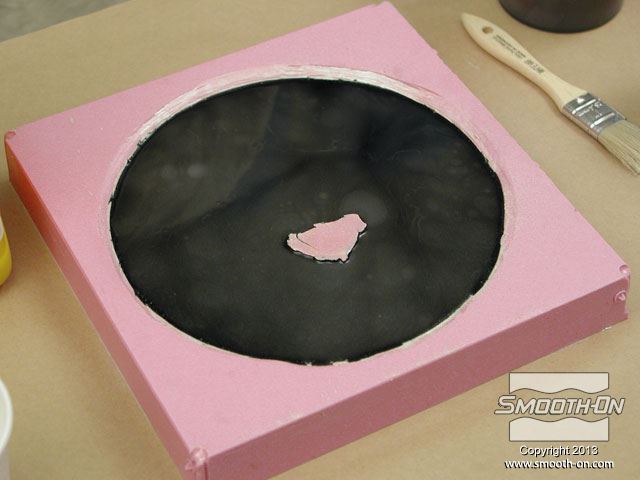 לחיצה להגדלת תמונה כשהחומרים מעורבבים כראוי, שופכים את פוליאוריתן ליציקה Smooth-Cast ®300 לנקודה אחת בתבנית. כשהחומרים מעורבבים כראוי, שופכים את פוליאוריתן ליציקה Smooth-Cast ®300 לנקודה אחת בתבנית.