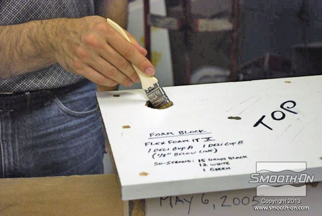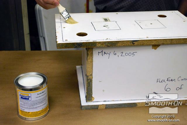 לחיצה להגדלת תמונה מורחים גם כל החורים במכסה חומר הפרדה על בסיס וקס Sonite Wax, כדי למנוע מהקצף להדבק. מורחים גם כל החורים במכסה חומר הפרדה על בסיס וקס Sonite Wax, כדי למנוע מהקצף להדבק.