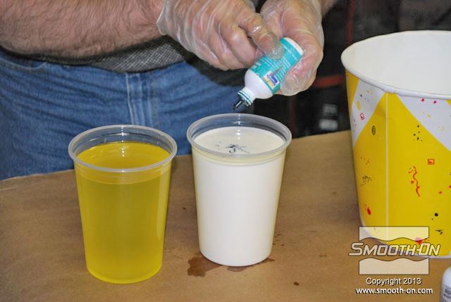 לחיצה להגדלת תמונה מערבבים את המקשה עם הפיגמנטים השונים. מערבבים את המקשה עם הפיגמנטים השונים.