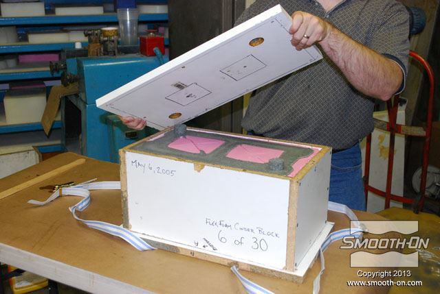 לחיצה להגדלת תמונה מכניסים את תבנית ה סיליקון ליציקה Mold Max 30 לתוך קופסת תבנית מעץ. מכניסים את תבנית ה סיליקון ליציקה Mold Max 30 לתוך קופסת תבנית מעץ.