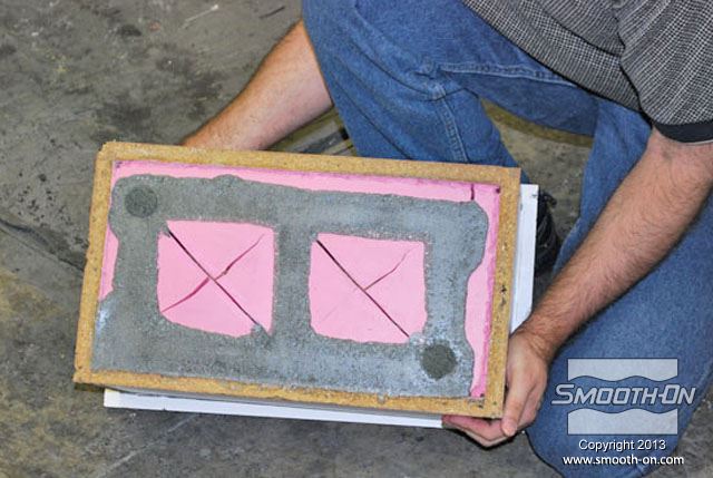 לחיצה להגדלת תמונה הופכים את התבנית ומסירים את קופסת העץ מ תבנית הסיליקון. הופכים את התבנית ומסירים את קופסת העץ מ תבנית הסיליקון.